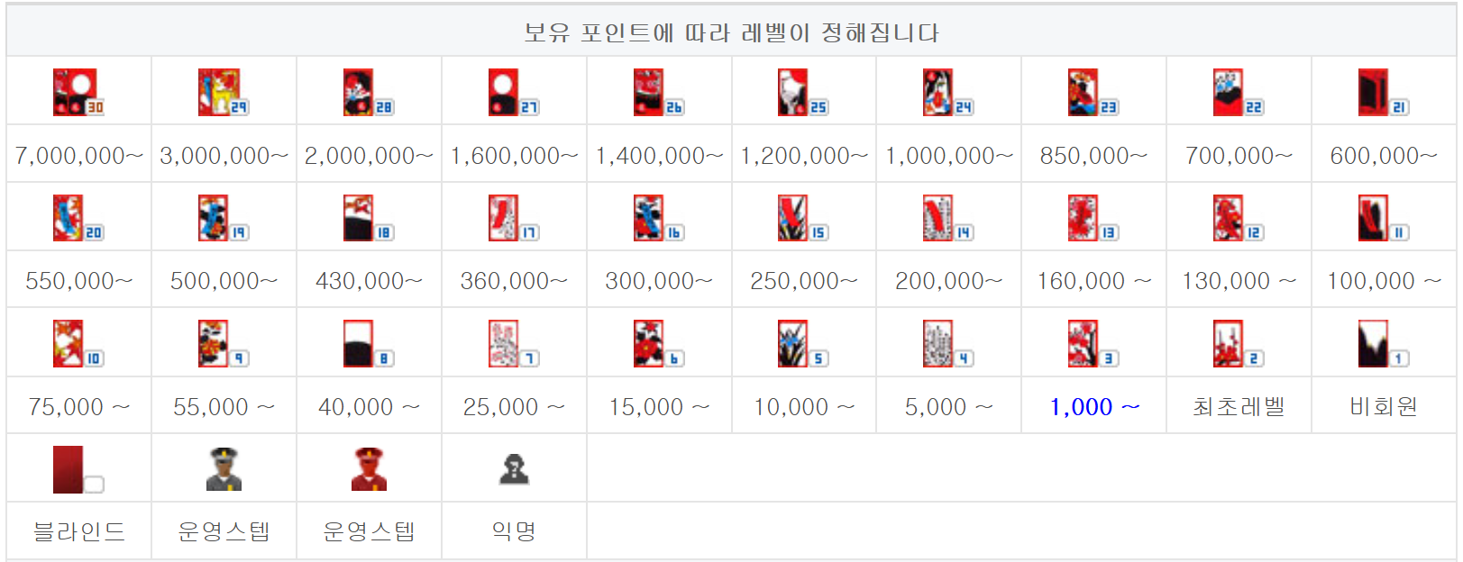 여러분은 몇렙? 보유 포인트에 따라 레벨이 정해집니다.