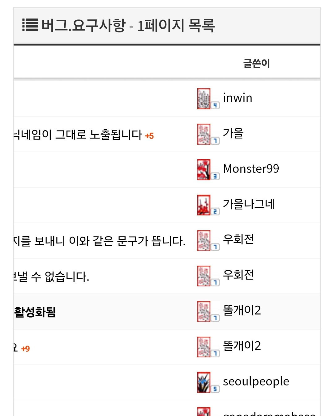 목록에 닉네임 레벨 표시가 이전한 포인트가 빠진 것처럼