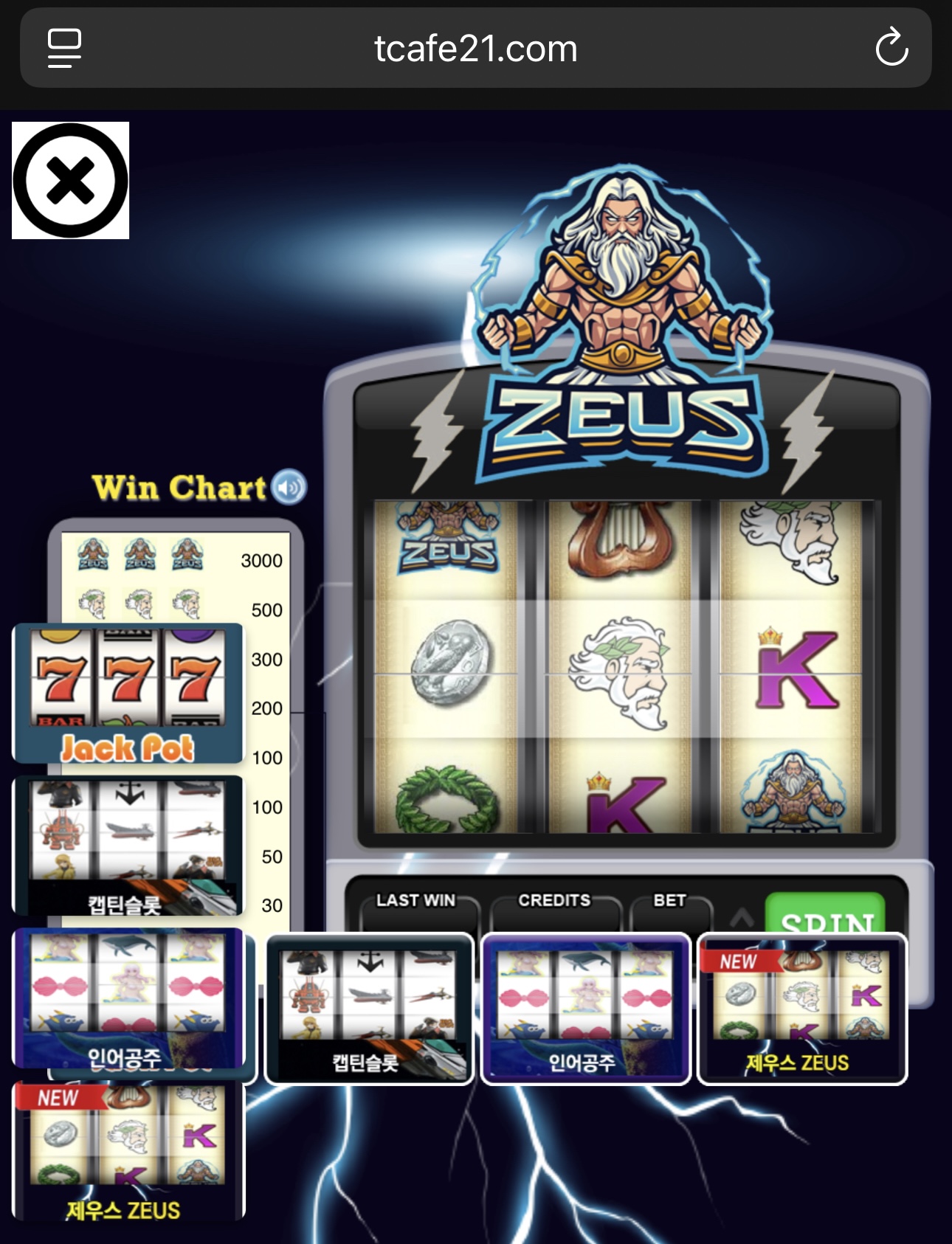 첨부 사진처럼 모바일 에서만 제우스 슬롯이