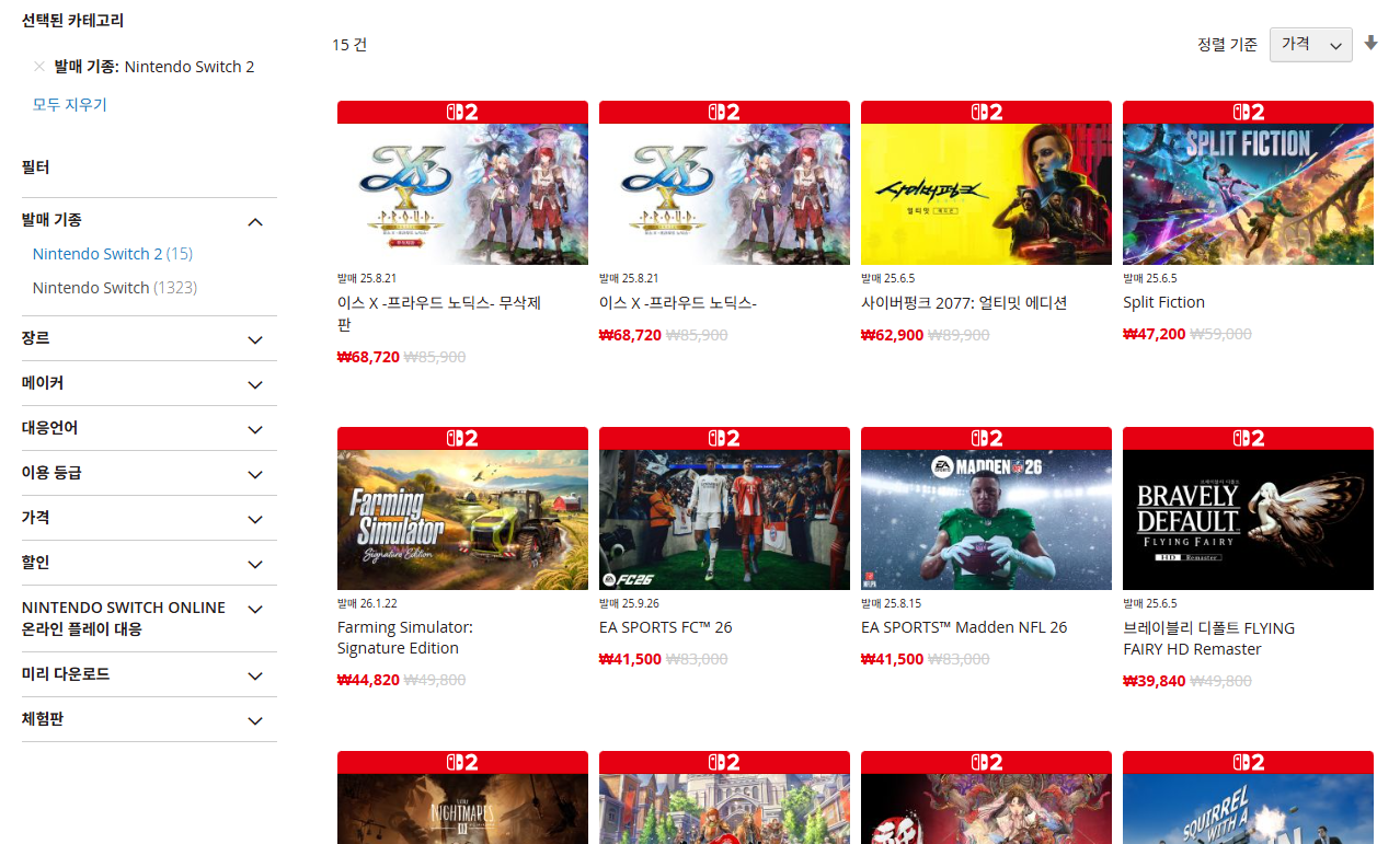 스위치2는 게임을 사고 싶어도 살게 없네요
