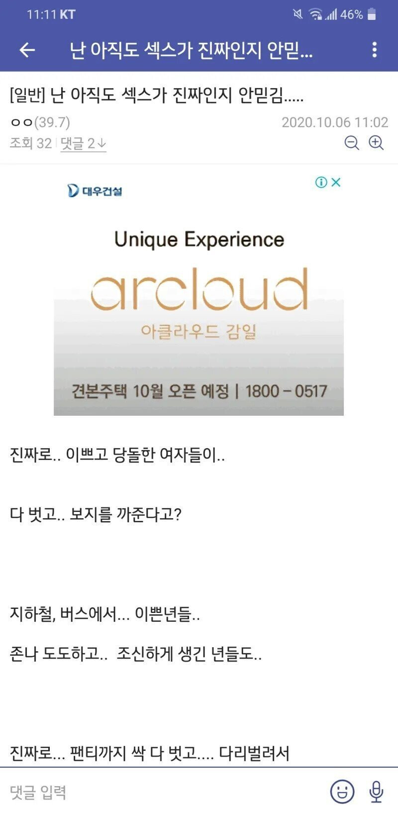 | 열람중 | 유머 | 19) 섹스가 안 믿긴다는 디시인... 댓글 +4 개 |