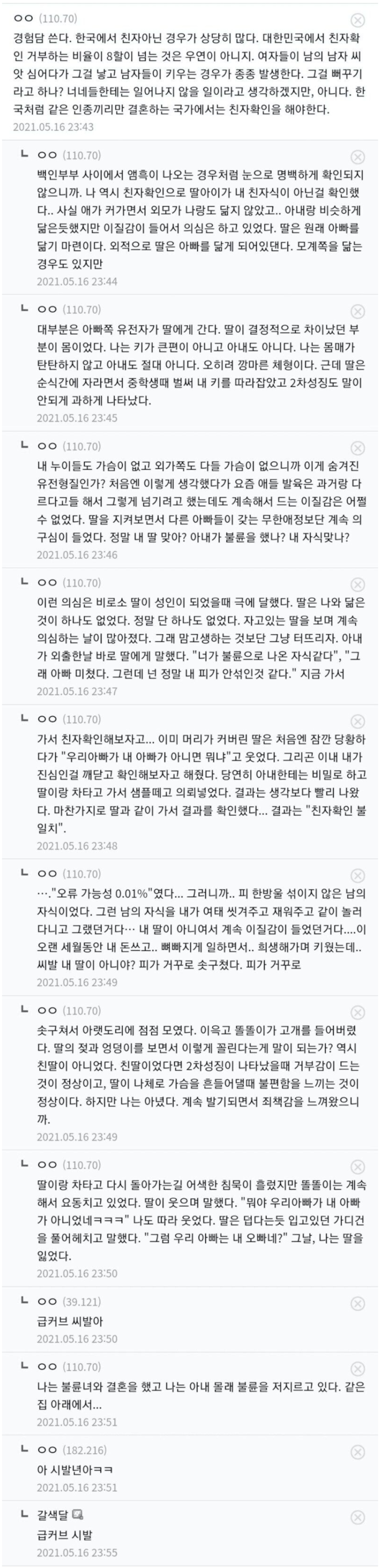 친자확인 결과 불일치 나온 디씨인