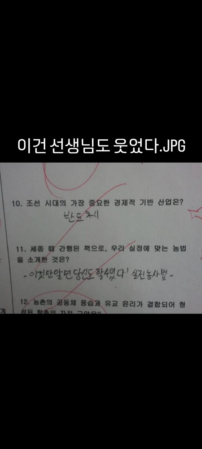 선생님도 터져버린 학생의 답안