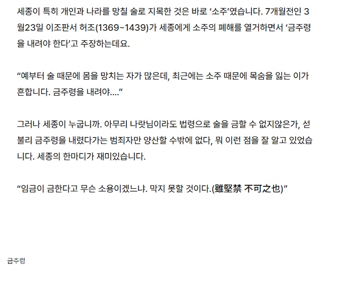 미국도 금주법 시행하다가 결국은 망했죠. 금주법...되겠냐를 인지한 킹세종 대단!