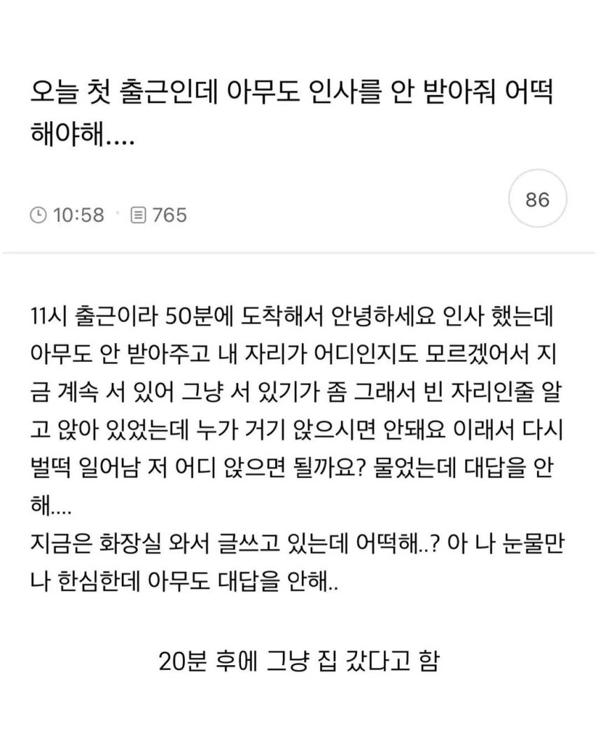 20분 동안 찾았는데도 내 책상이 없다면 애초부터 없던 거지. 현장직이 사무실은 왜 가있던 거야?