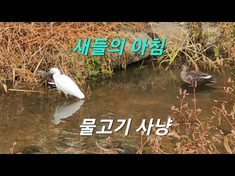 새들의 아침 물고기 사냥